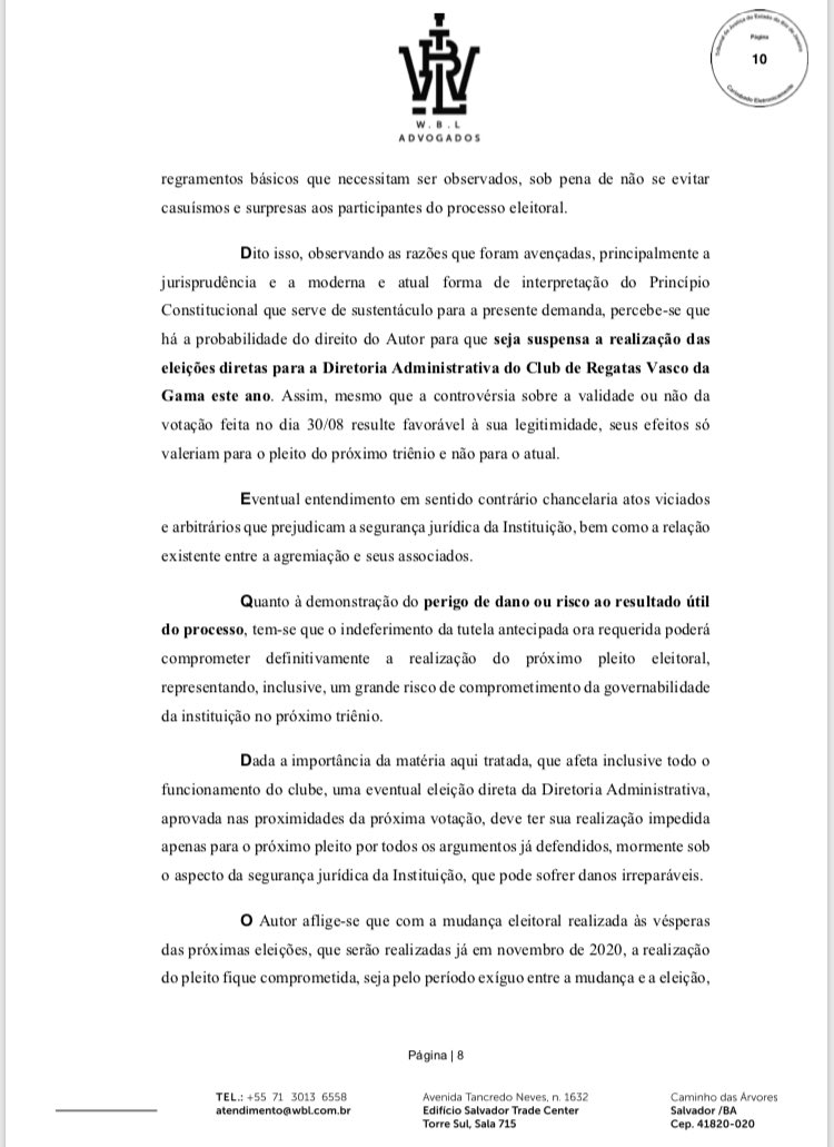 Sócio entra com pedido para suspensão das Diretas, baseado no Princípio da Anterioridade Eleitoral