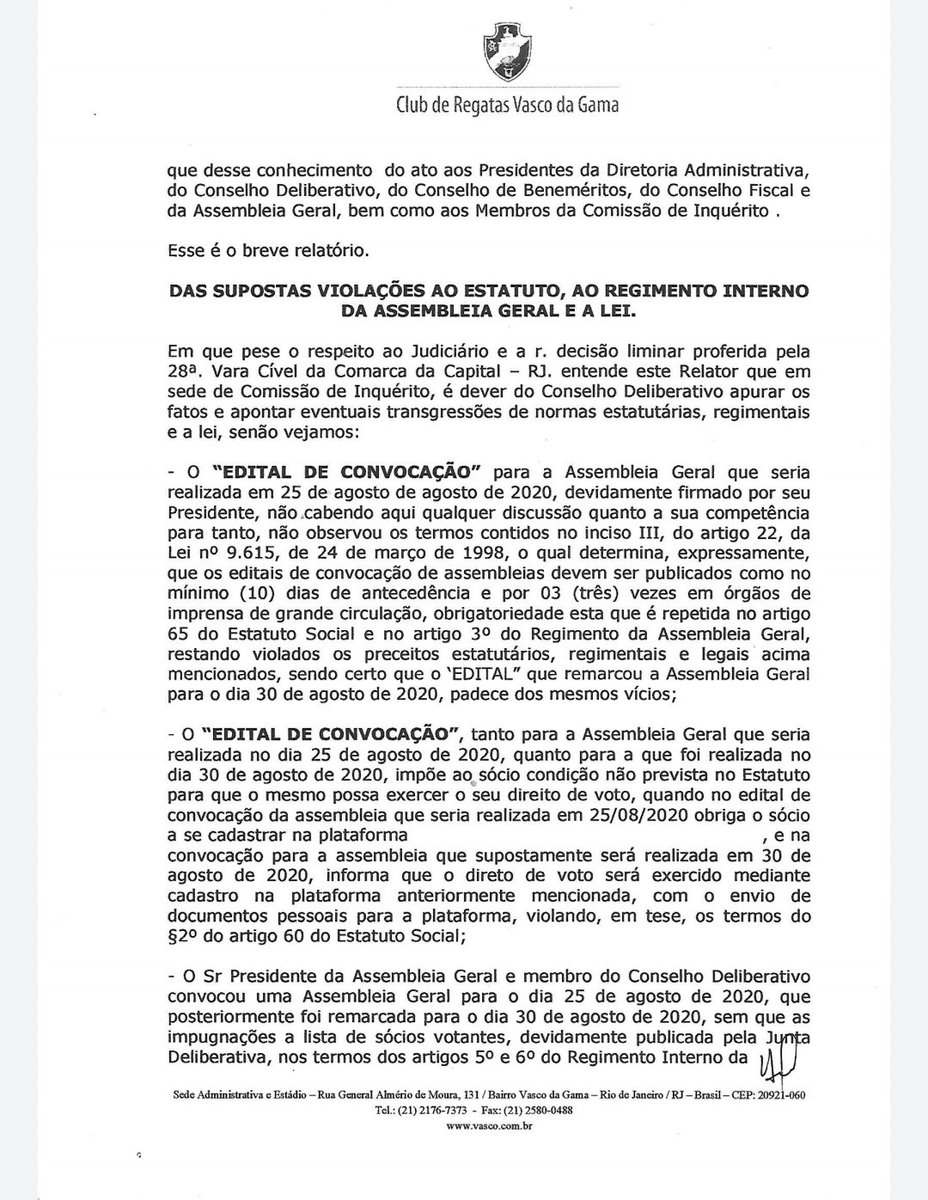 O relatório aprovado na comissão de inquérito contra Mussa.