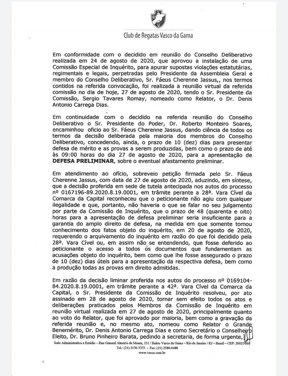 O relatório da comissão de inquérito criada para apurar a conduta de Faues Mussa no procedimento da AGE foi aprovado por 8 votos a 2. Mussa agora tem dez dias úteis para apresentar a sua defesa.