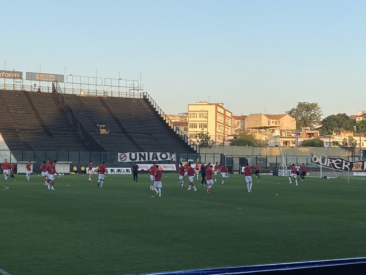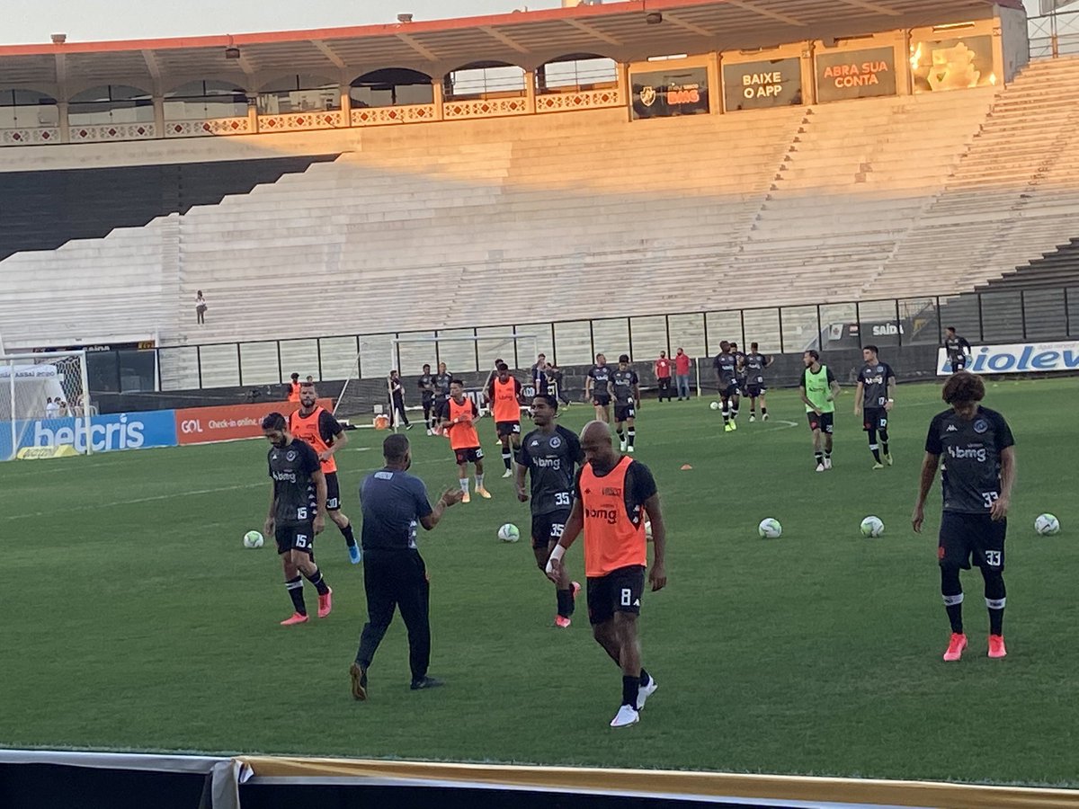 Com som da torcida nas caixas de som, Vasco em campo para aquecimento. Jogadores do Athletico também