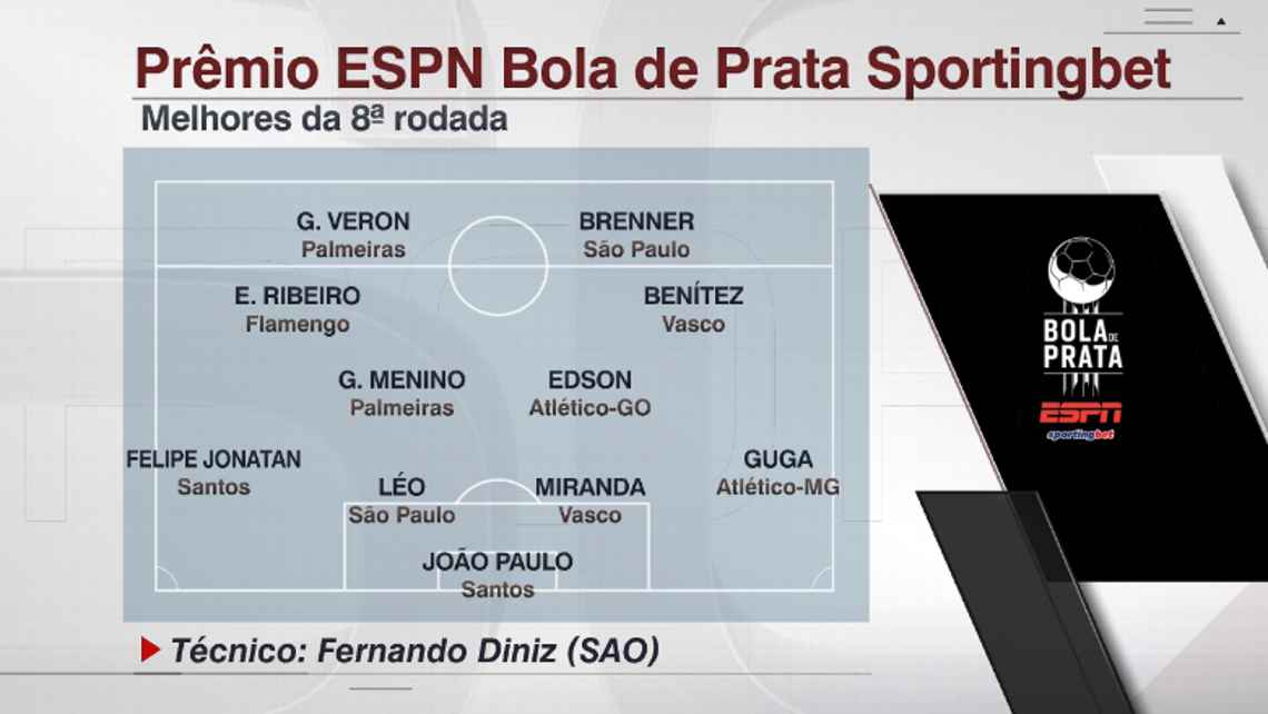 A oitava rodada do Campeonato Brasileiro no 51º Prêmio ESPN Bola de Prata Sportingbet teve como destaque as ótimas atuações de jogadores jovens. Em especial, a dos atacantes Gabriel Veron, do Palmeiras, 18, e Brenner, do São Paulo, 20, que entraram no segundo tempo e mudaram o panorama das partidas.