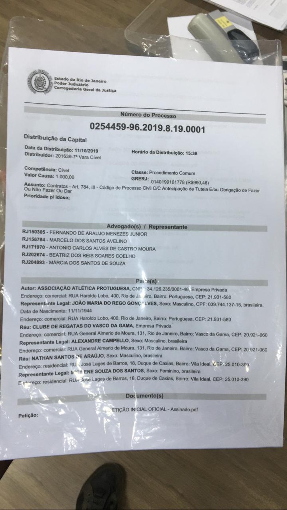 Na ocasião, a Portuguesa alegou que, caso Nathan assinasse contrato profissional com o Vasco, caberia ao clube de São Januário repassar 30% dos direitos econômicos de uma futura venda. O Vasco não reconheceu tal acordo, o que fez a Lusa notificar o co-irmão judicialmente.
