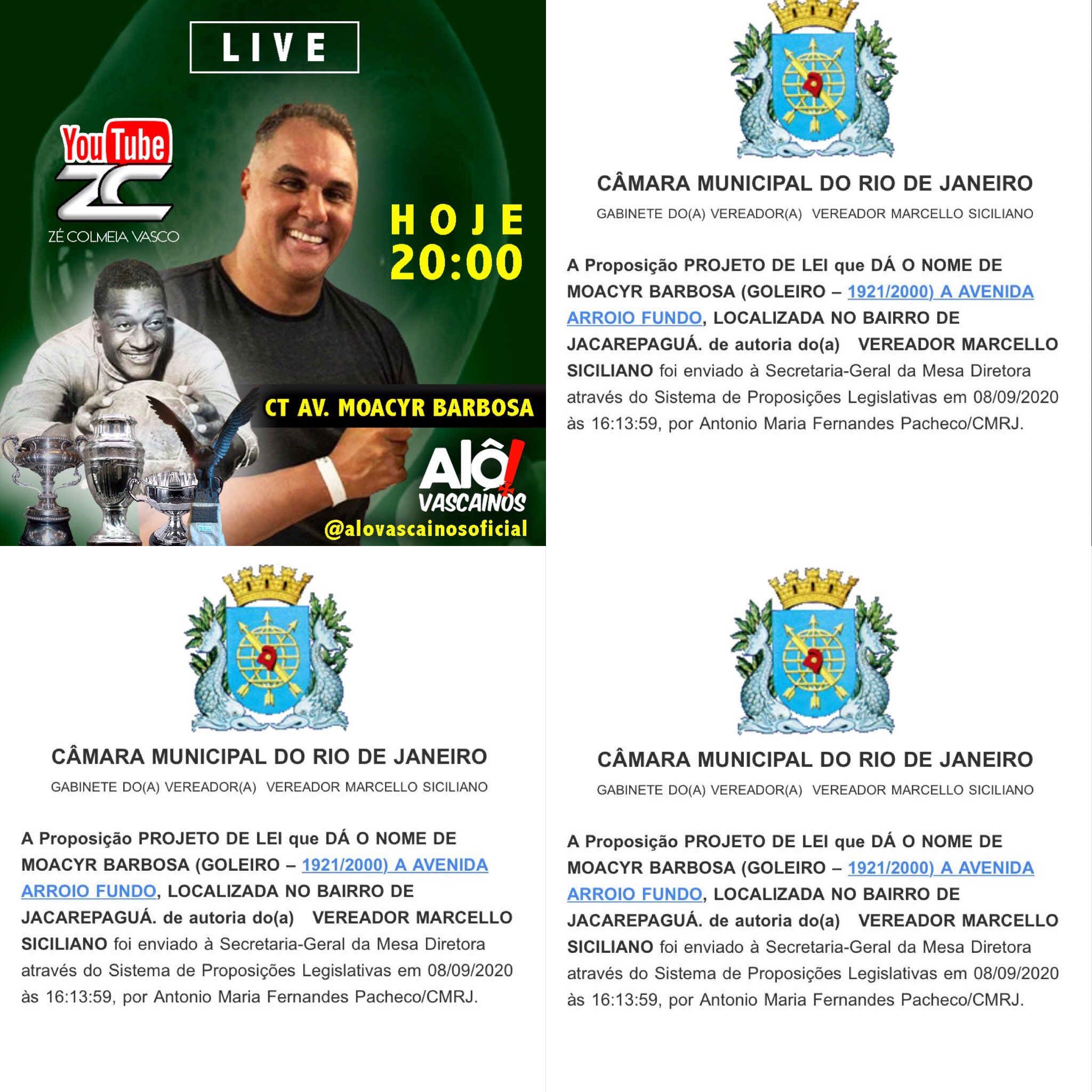 Que tal chamarmos a Avenida Arroio Fundo hoje em frente ao CT do Vasco de Avenida Moacyr Barbosa.