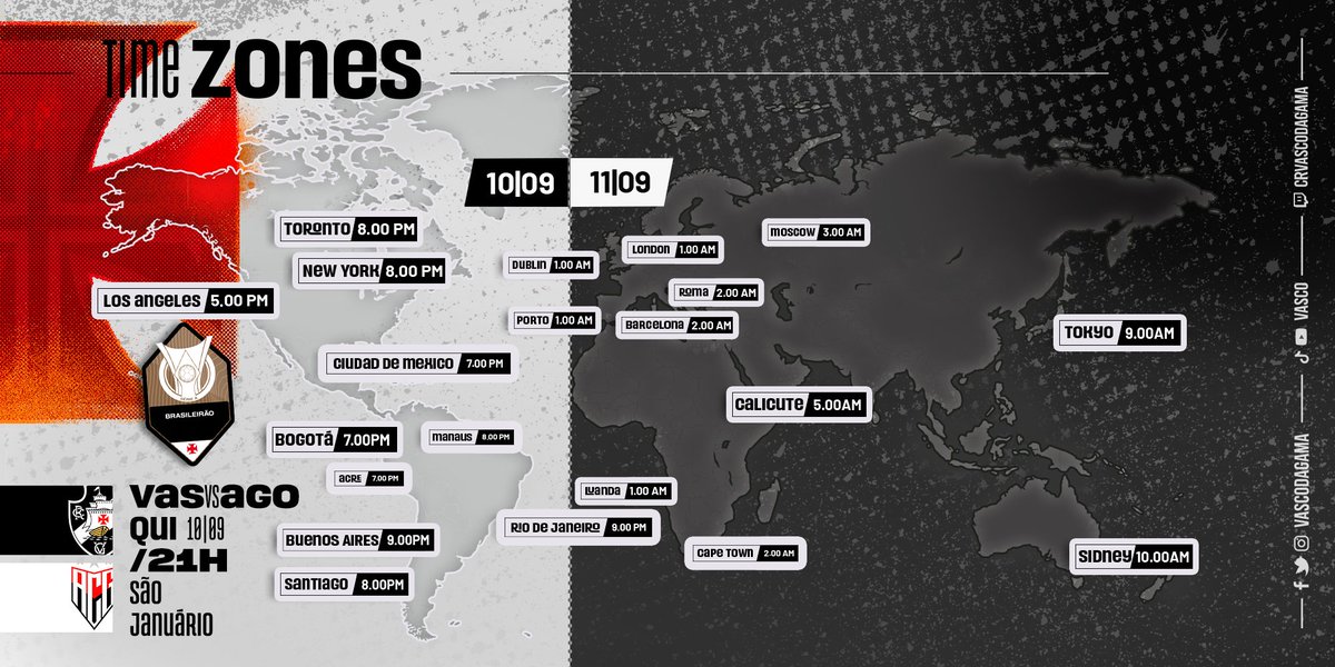 Vasco divulga horário do jogo contra o Atlético-GO para os torcedores espalhados pelo mundo