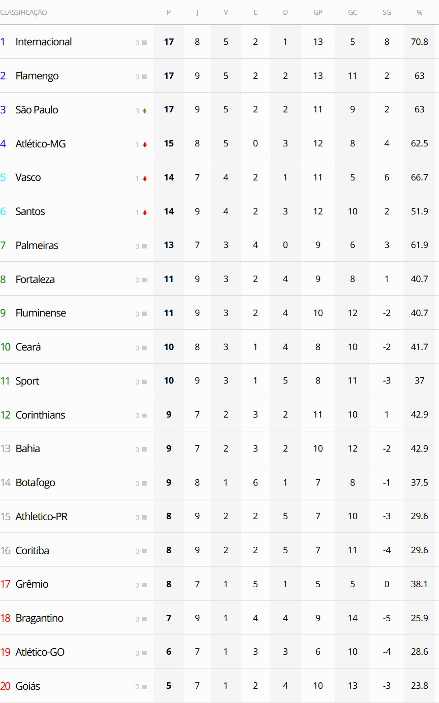 Se o Inter perder para o Ceará por 2 ou mais gols de diferença, uma vitória simples sobre o Atlético-GO bastará para que o Vasco retome a liderança do Brasileiro.
