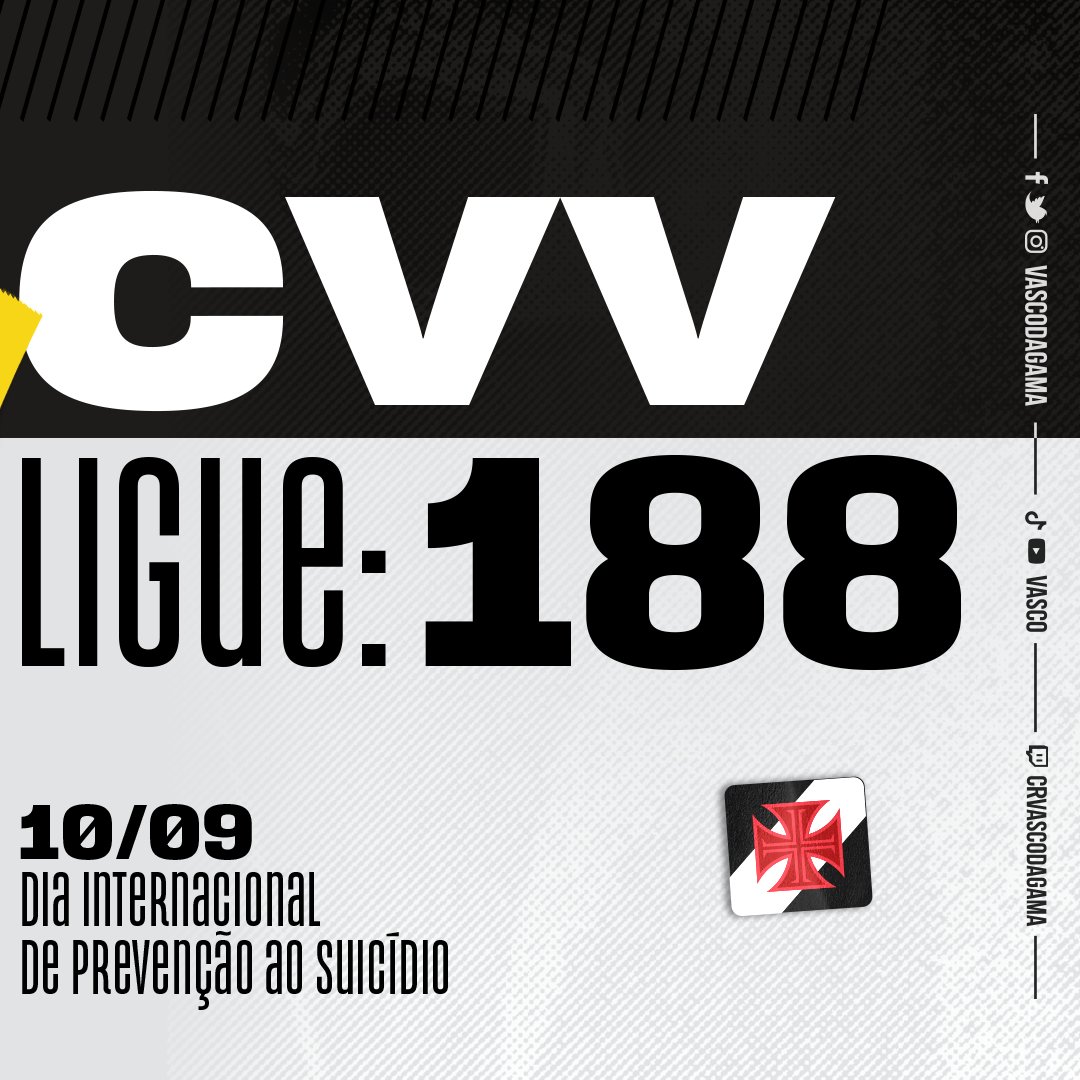 Vasco publica informação em rede social sobre o Dia Internacional de Prevenção ao Suicidio
