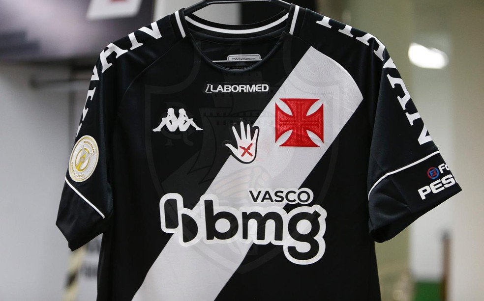 Veja foto da camisa do Vasco preparada para o jogo desta 5ª-feira, com símbolo da iniciativa Sinal Vermelho