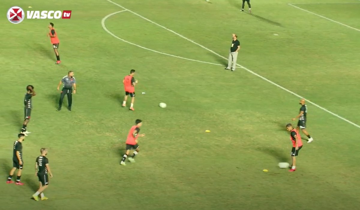 Antonio Lopes, treinador campeão do Brasileirão de 97 e da Libertadores em 98, acompanha o aquecimento de perto em São Januário. Hoje coordenador técnico, tem a importância nos bastidores sempre destacada por Ramon nas entrevistas #lanceCOLINA