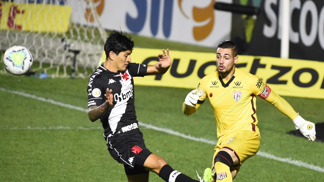 O Vasco esboçou uma pressão no início, mas tinha dificuldade em passar pela marcação. Só que quem levou perigo foi o Atlético-GO, aos nove minutos. Chico recebeu passe na área, mas chutou sobre o travessão.