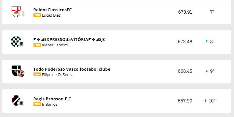 Cartola FC: Confira a classificação da Liga NETVASCO após a 9ª rodada