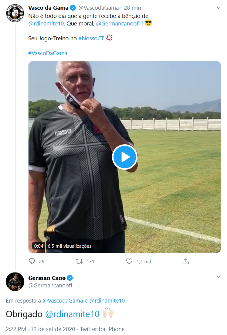 Fonte: Twitter oficial do Vasco, Twitter de Germán Cano