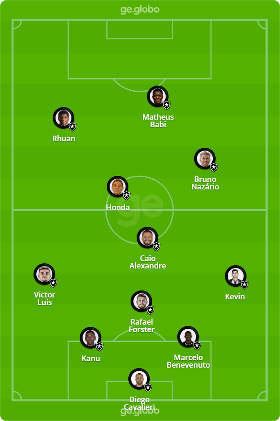 Depois de entrar bem contra o Athletico-PR, Rhuan deve ser a novidade do Botafogo para enfrentar o Vasco. Com Gatito Fernandez lesionado, Diego Cavalieri segue na meta alvinegra. Luis Henrique e Pedro Raul, fora dos dois últimos jogos, deverão começar no banco de reservas.