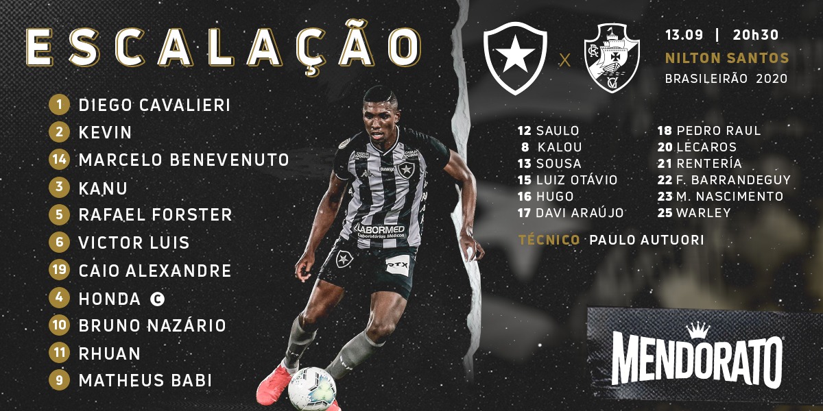 O BOTAFOGO tá escalado pro clássico. Vamos pra cima!⭐️⚫️⚪️