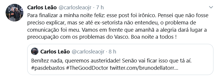 23:30 - Humorista vascaíno Whindersson Nunes pergunta no Twitter qual o preço de Benítez, emprestado pelo Independiente