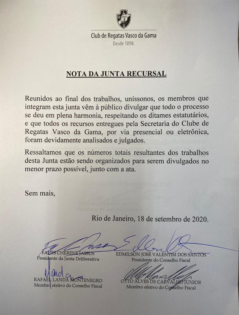 Junta Recursal conclui trabalhos e membros assinam nota conjunta em que afirmam que a condução se deu "em plena harmonia".