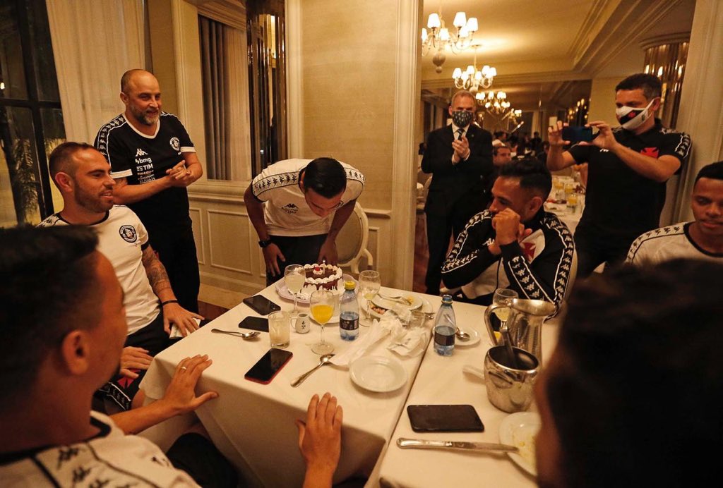 Elenco celebrou aniversário de Guilherme Parede na concentração