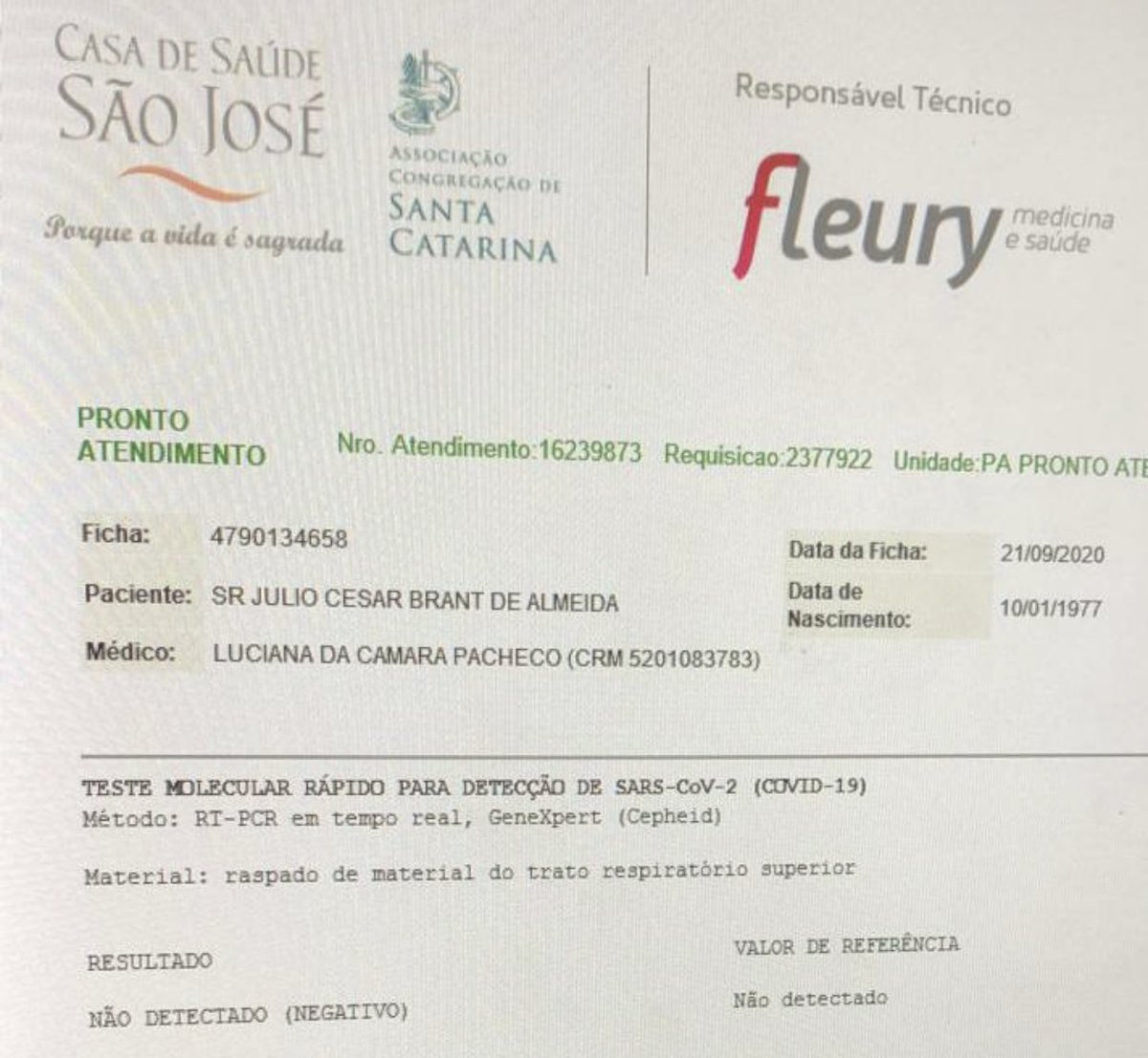 Julio Brant diz que está recuperado de Covid-19: 'Negativo!'