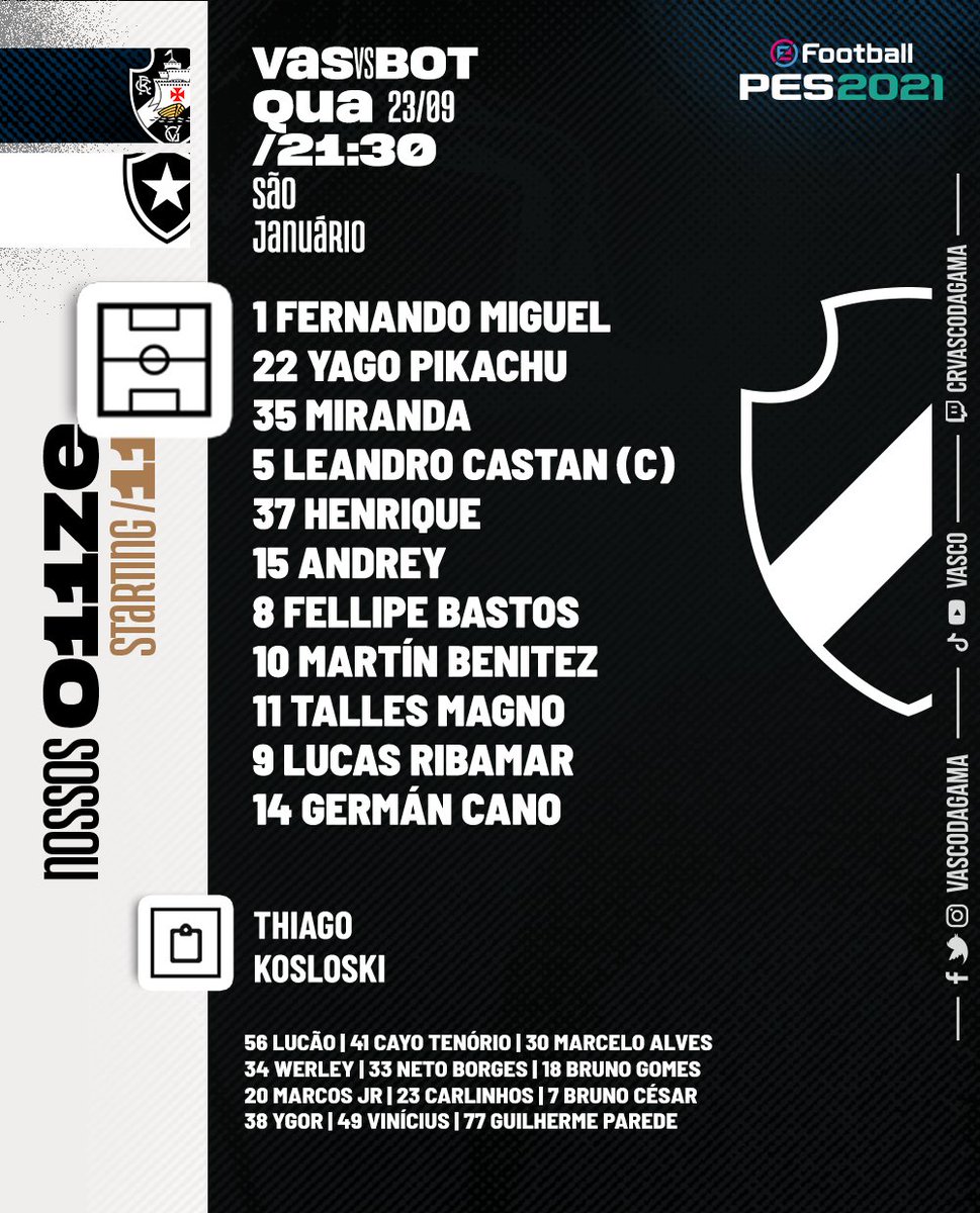 20:41 - VascoTV apresenta disposição tática do time titular desta 4ª-feira; confira