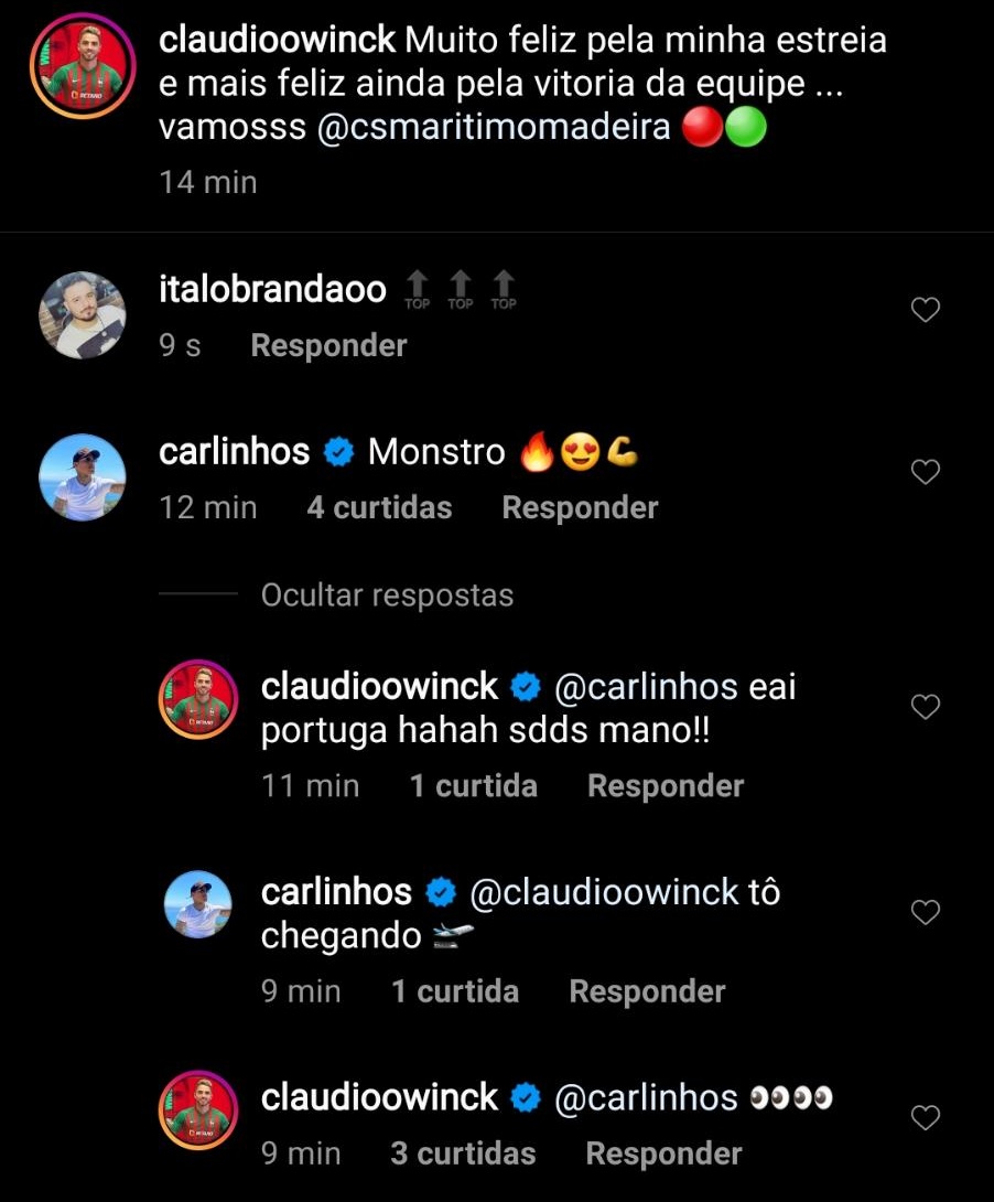 Carlinhos escreve em foto de Claudio Winck, hoje no futebol português: 'Tô chegando'
