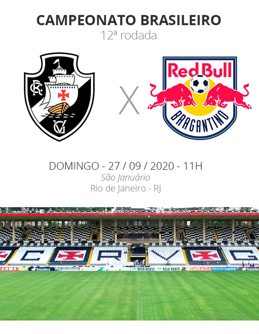 Vasco e Bragantino se enfrentam às 11h (de Brasília), em São Januário, neste domingo, pela 12ª rodada do Brasileirão. Os dois times buscam recuperação.