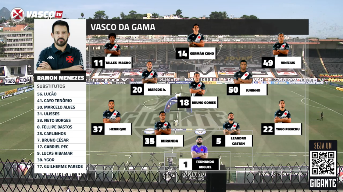23/09/20 - VascoTV apresenta disposição tática do time titular desta 4ª-feira; confira