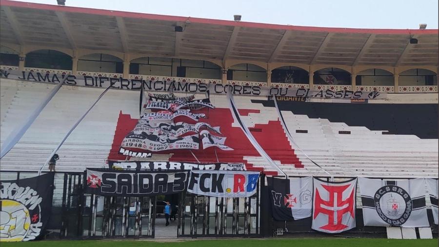 Torcedores vascaínos colocaram faixa contra a empresa Red Bull em São Januário; veja foto