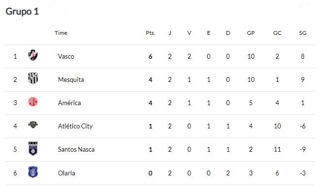 Atualmente no Grupo 01 do Torneio Rio São Paulo o Vasco lidera com seis pontos. O Cruzmaltino tem ainda o melhor ataque ao lado do Mesquita, que ocupa a segunda posição com quatro pontos. Com um saldo inferior, o América é o terceiro colocado, também com quatro pontos.