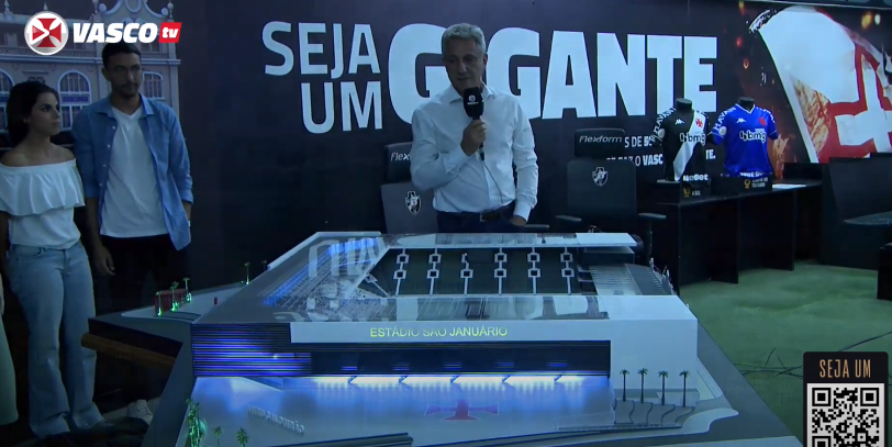 O Vasco apresentou nesta quarta-feira a maquete do projeto de reforma de São Januário. O evento, transmitido pela Vasco TV, contou com o presidente Alexandre Campello, ao lado do VP de Obras, Pedro Seixas, e dos engenheiros e arquitetos responsáveis.