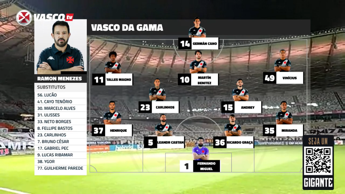 VascoTV apresenta disposição tática do time titular deste domingo; confira
