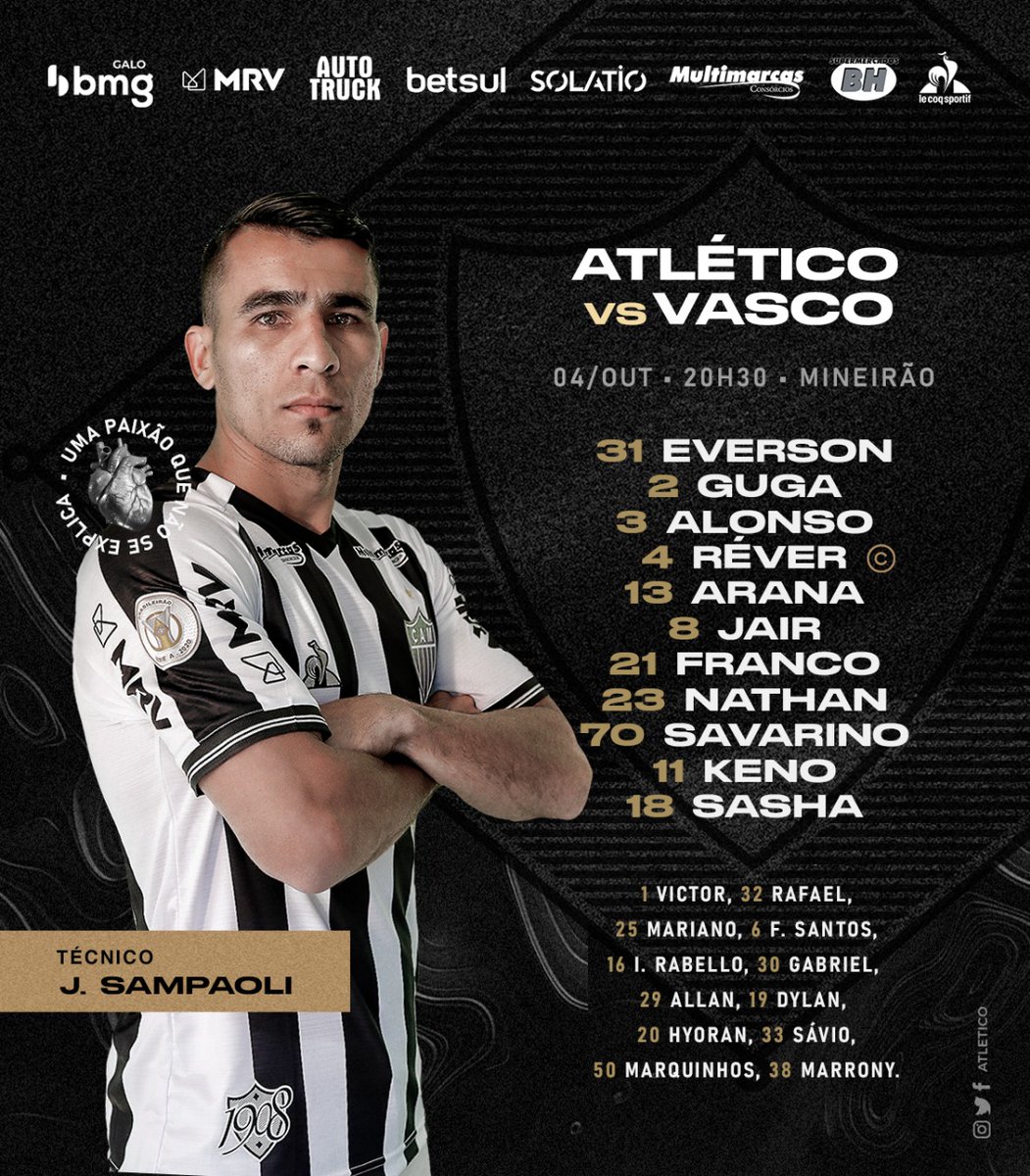 ? GALO ESCALADO! Confira nossa escalação para o jogo contra o Vasco, pelo @Brasileirao!