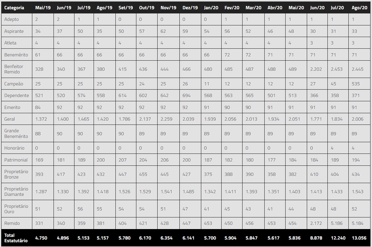 Faça o download da listagem de sócios ativos em 31/08/2020