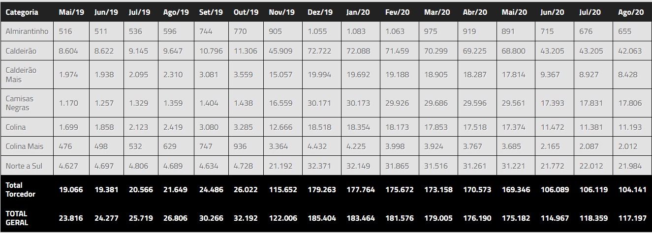 Vasco fechou agosto com 117.197 sócios, sendo 104.141 sócios-torcedores; veja números e lista