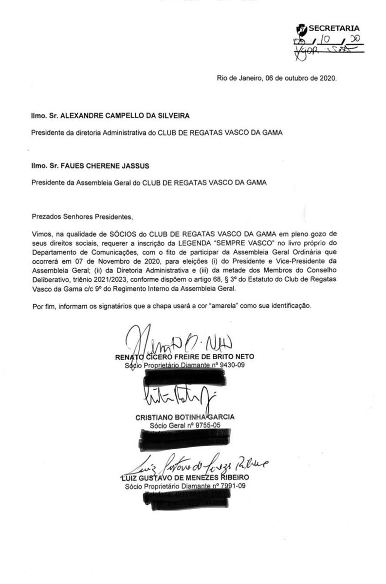 Julio Brant, da Sempre Vasco, também registrou candidatura.