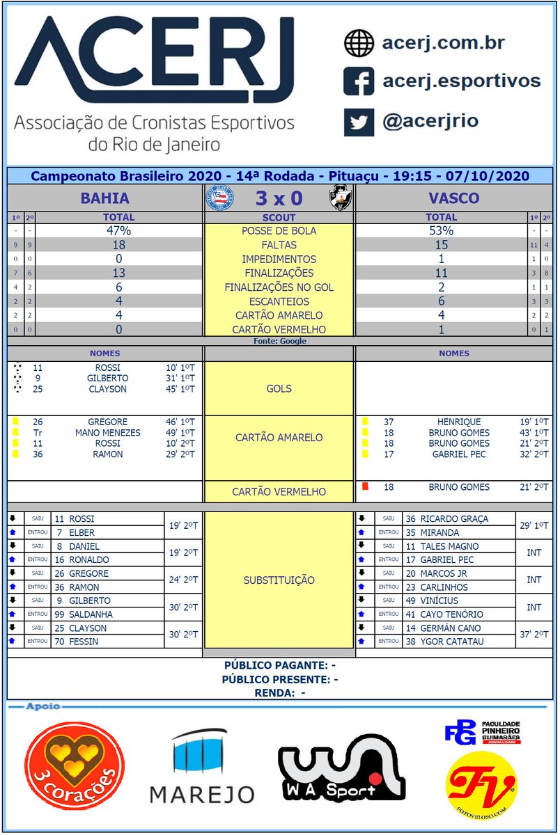 Fonte: Gazeta Esportiva (texto, ficha), NETVASCO (ficha), Youtube ge (vídeo), Site oficial do Bahia (fotos), Twitter Acerj (estatísticas), Flickr oficial do Bahia (fotos)