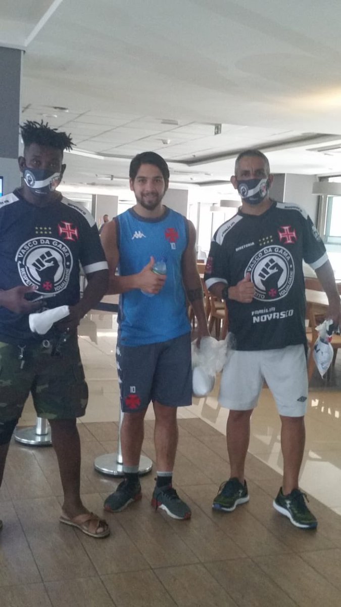 Já em Salvador, o elenco vascaíno teve um encontro com a torcida Novasco, na recepção do hotel. O ídolo Carlos Germano foi tema da camisa desse ano e distribuiu autógrafos, posando também para a foto com a galera.