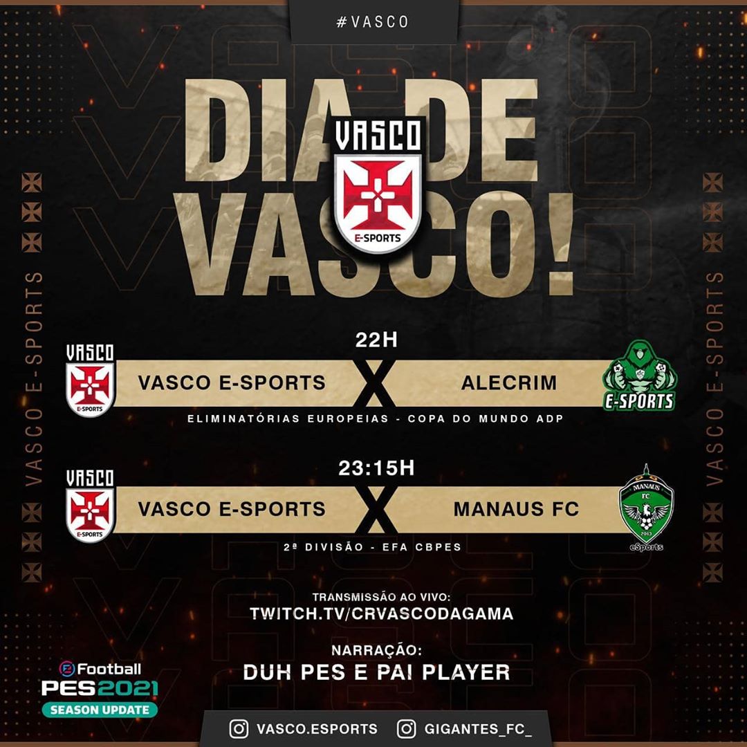vasco.esports Hoje, teremos dois grandes jogos transmitidos na Twitch, confere aí: