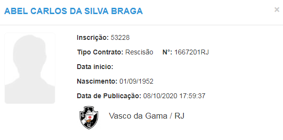 No mesmo dia em que anunciou a demissão de Ramon Menezes, o Vasco se desligou oficialmente de outro treinador. Isto porque só nesta quinta-feira, 206 dia depois da comunicação oficial do acordo pela saída de Abel Braga, a rescisão do contrato entre o técnico e o clube foi publicada no BID da CBF. O Esporte News Mundo apurou que as partes negociavam um acordo pela dívida que o Cruz-Maltino tem com o treinador.