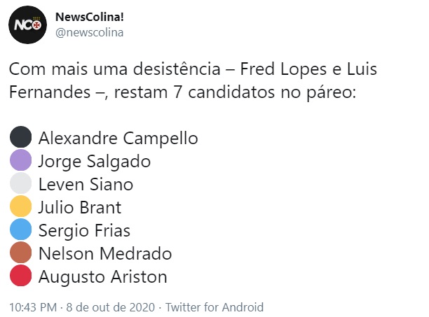 23:08 - Em nota, grupo Fuzarca declara apoio a Luis Fernandes e Leven Siano