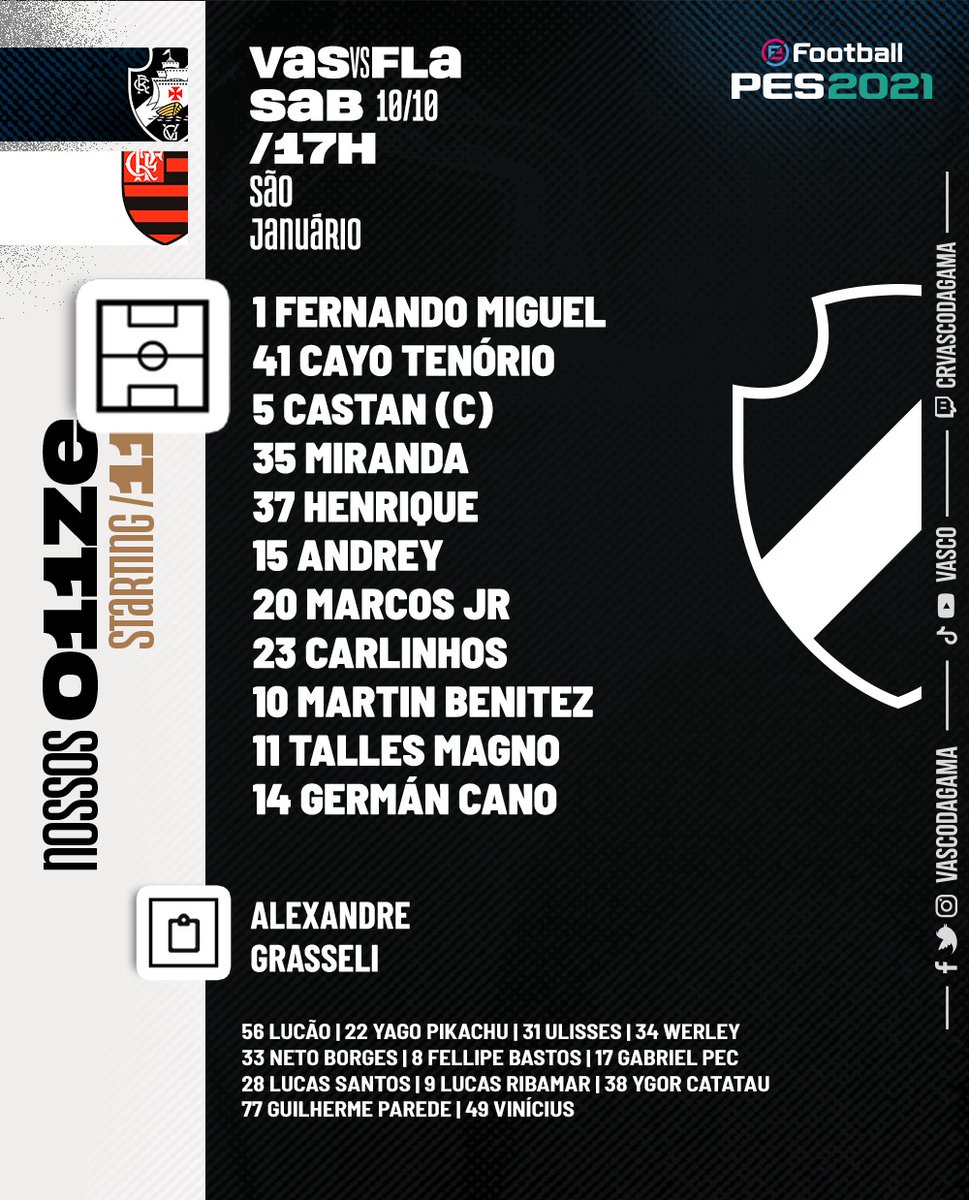 07/10/20 - Confira a escalação do Vasco; Yago Pikachu e Fellipe Bastos voltam ao time titular
