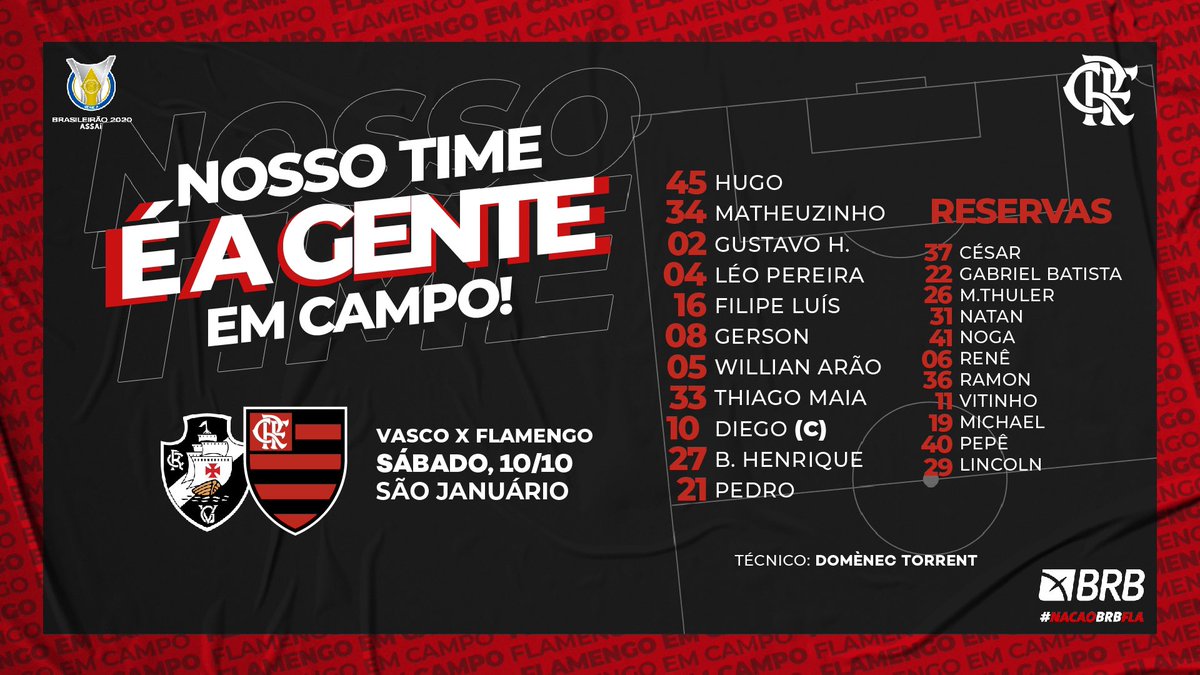 10/10/20 - Confira desfalques e pendurados de Vasco e Urubu