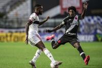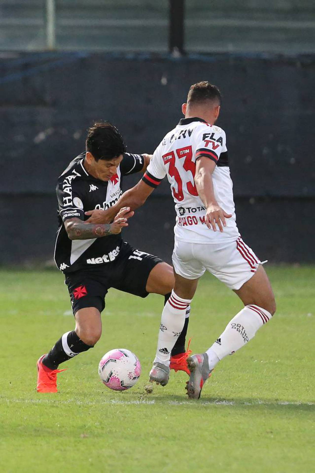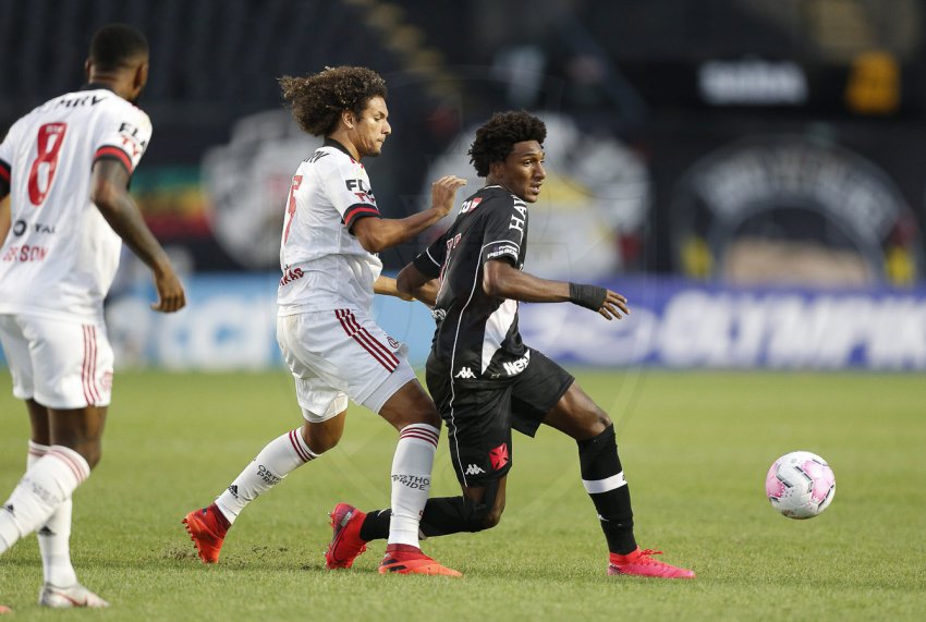 O clássico começou equilibrado, mas o Vasco abriu o placar aos oito minutos. Bruno Henrique recuou errado no pé de Cayo Tenório. O lateral passou por Filipe Luís e tocou para Talles Magno empurrar para a rede.