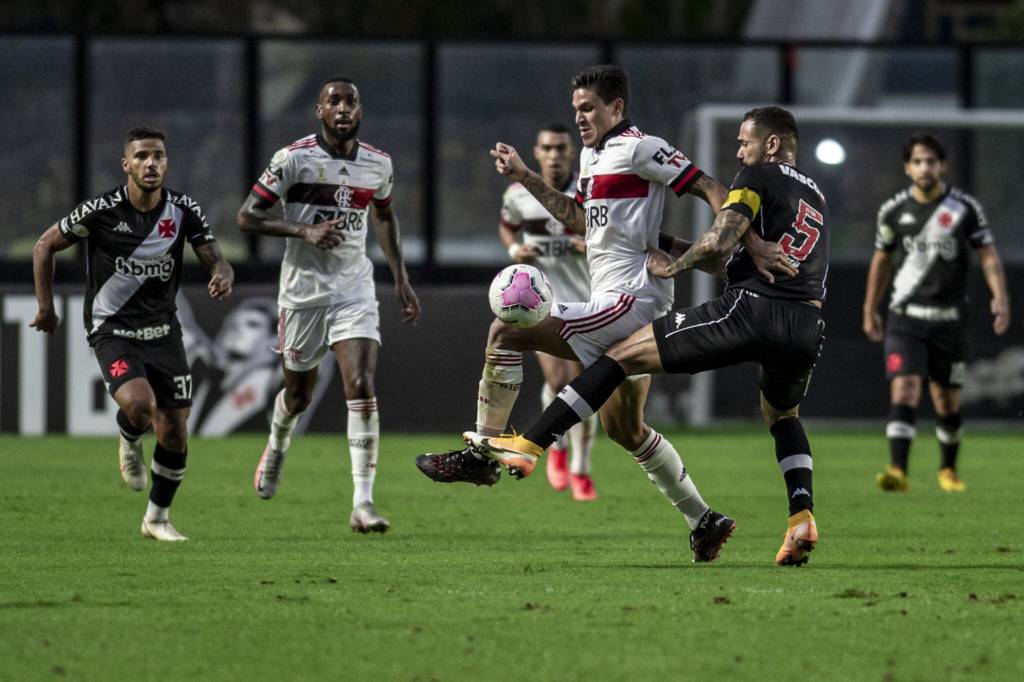 Após o revés, os cruz-maltinos passaram a buscar o ataque com intensidade. Os donos da casa assustaram aos 38 minutos, em chute de Guilherme Parede que Hugo Moura deu rebote. No minuto seguinte, o Vasco chegou a balançar a rede com Germán Cano, mas o gol foi invalidado após revisão do VAR.