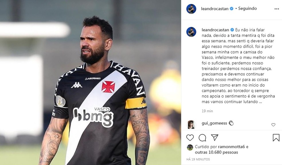 Leandro Castan desabafa no Instagram: 'Foi a pior semana minha com a camisa do Vasco'