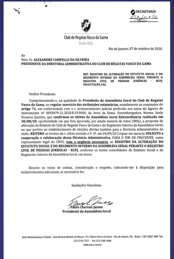 Mussa protocolou alteração do estatuto e do regimento interno da Assembleia Geral contemplando eleições diretas