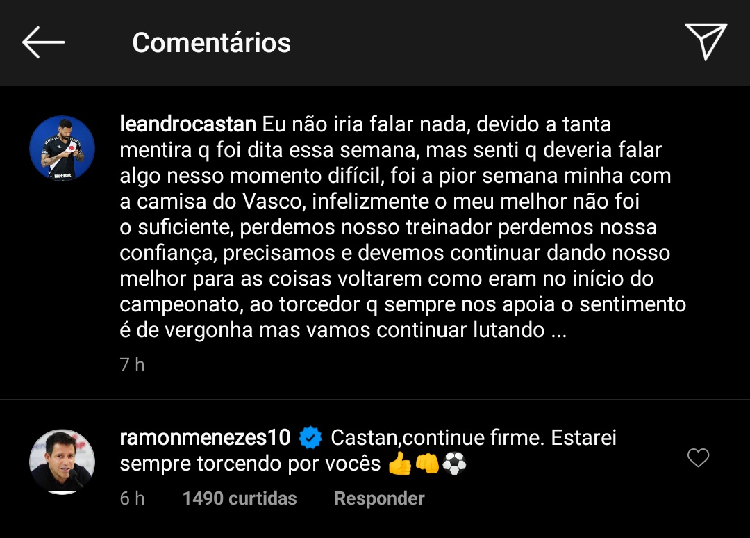 Ramon responde post de Castan: 'Continue firme. Estarei sempre torcendo por vocês'