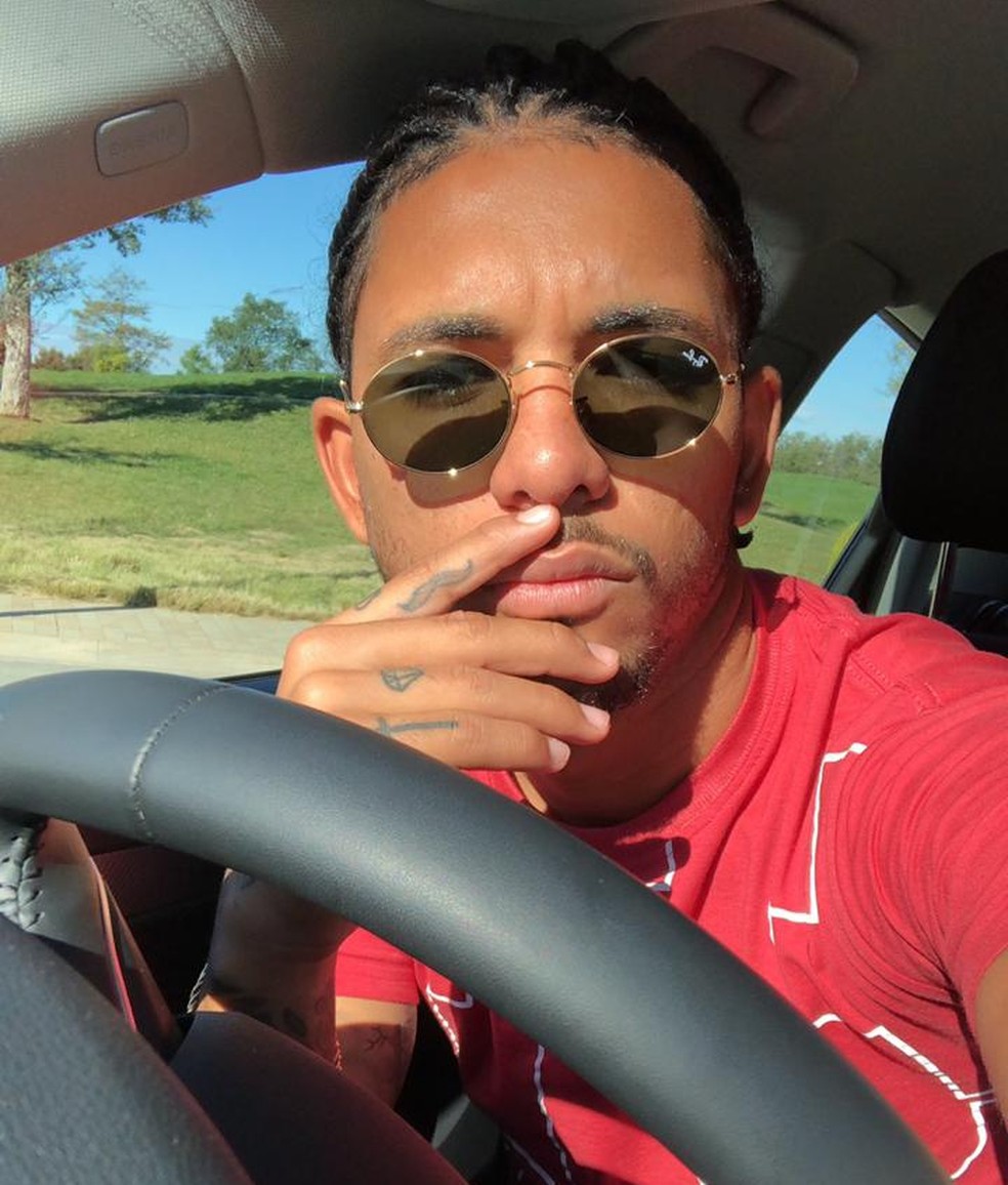O bigode do Bigode no dedo indicador da mão esquerda. No braço, também uma tatuagem da mãe |
