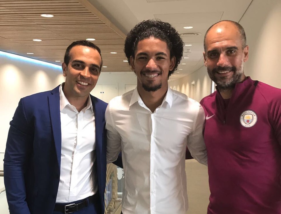 Philipe boaz, executivo do City, Douglas e Guardiola, que o observou para a contratação: técnico espanhol escreveu carta pedindo a liberação, mas eles ainda não trabalharam juntos |