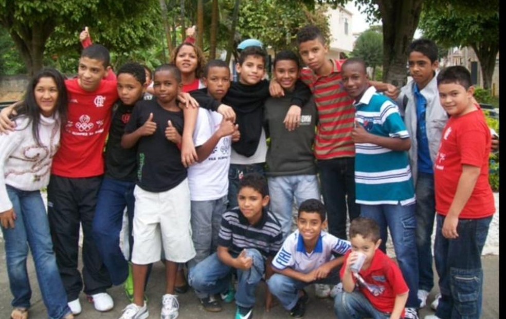 No projeto da Maré, em parceria com o Flamengo, Douglas é o segundo flexionado da direita para a esquerda |
