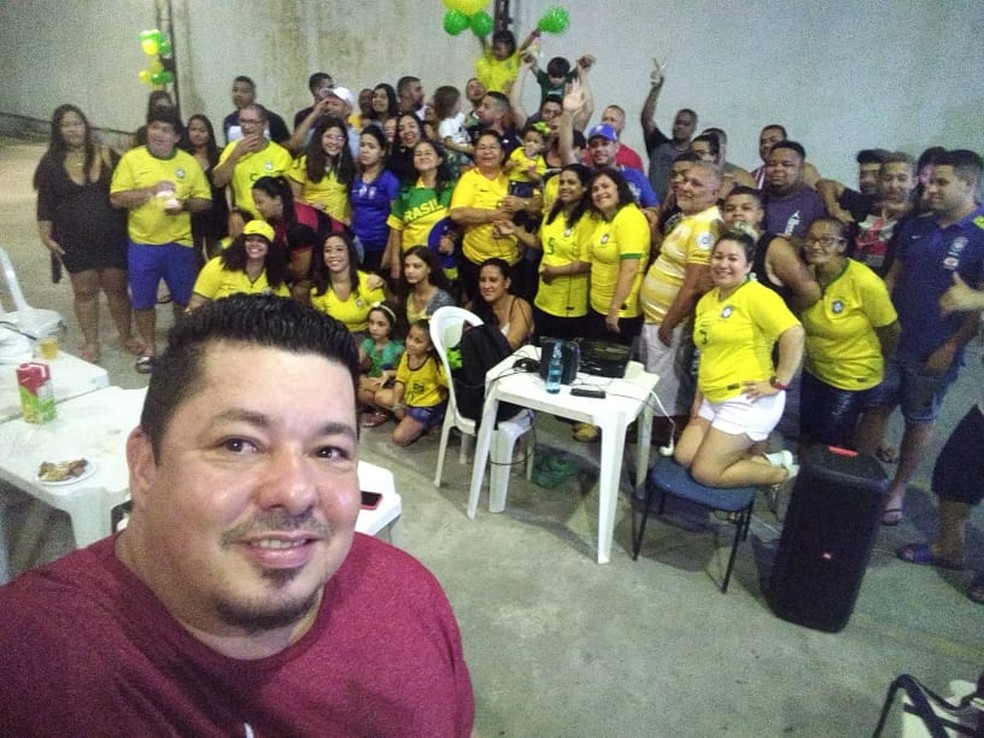 Amigos e família se reuniram para assistir a estreia de Douglas nas Eliminatórias na Nova Holanda |