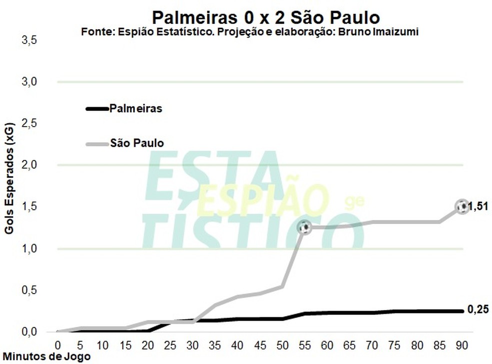 Veja em três jogos da rodada passada como os clubes constroem seus xG ao longo da partida.